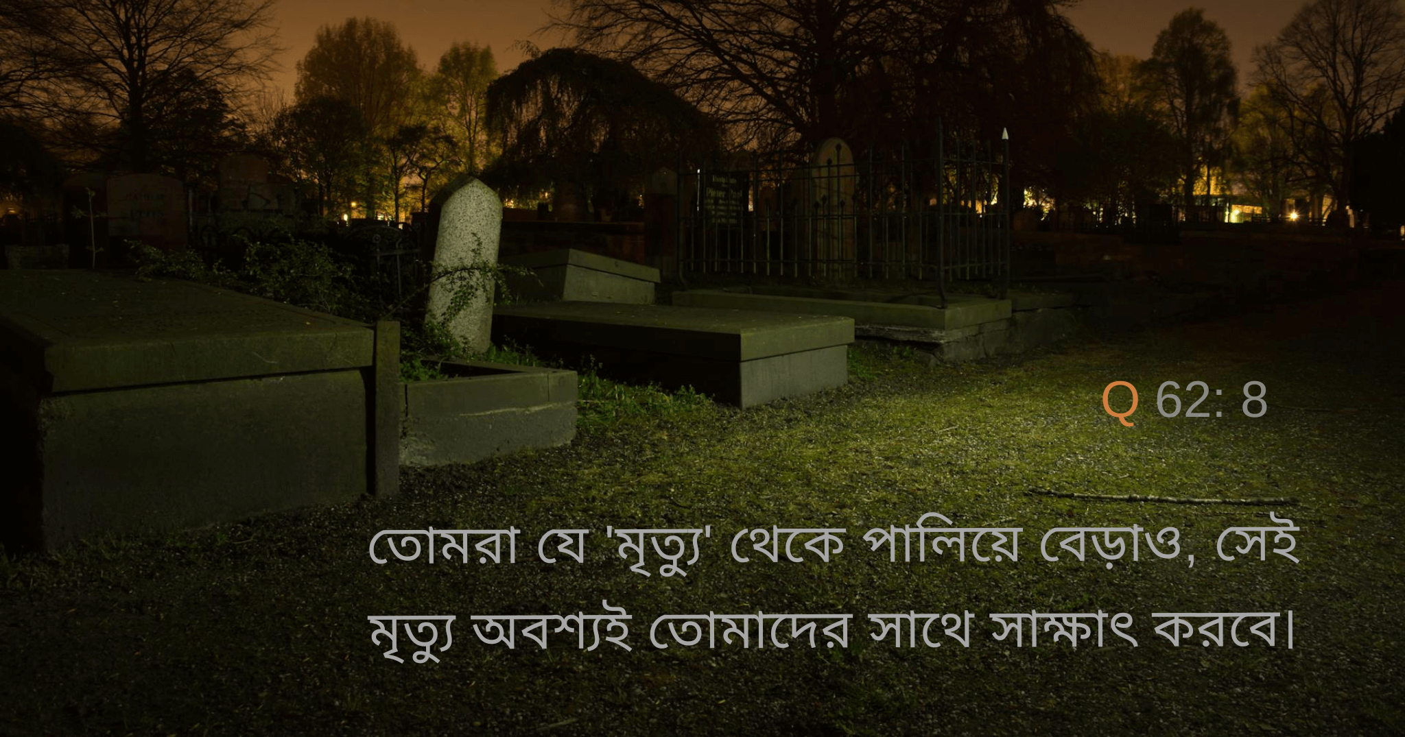 قُلۡ إِنَّ ٱلۡمَوۡتَ ٱلَّذِي تَفِرُّونَ مِنۡهُ فَإِنَّهُۥ مُلَٰقِيكُمۡۖ ثُمَّ تُرَدُّونَ إِلَىٰ عَٰلِمِ ٱلۡغَيۡبِ وَٱلشَّهَٰدَةِ فَيُنَبِّئُكُم بِمَا كُنتُمۡ تَعۡمَلُونَ