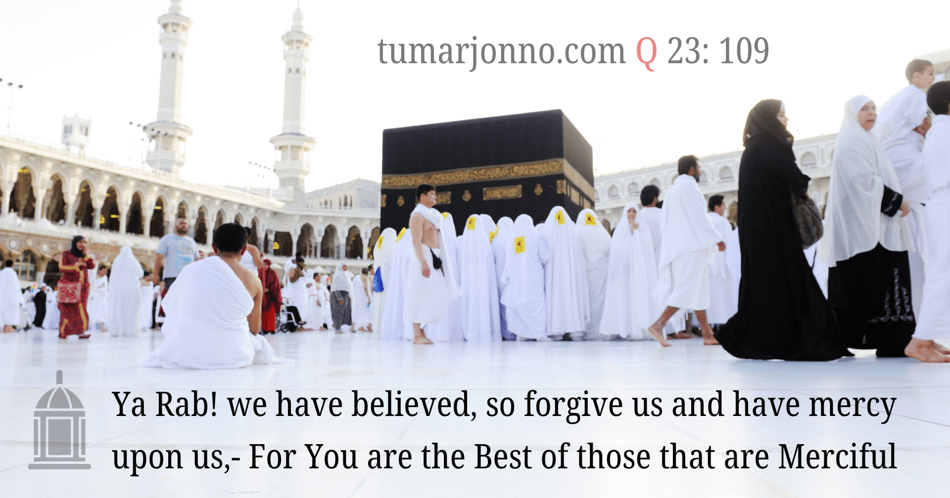 ইয়া রব, আমরা বিশ্বাস স্থাপন করেছি। অতএব আপনি আমাদেরকে ক্ষমা এবং রহম করুন। আপনি তো দয়ালুদের মধ্যে শ্রেষ্ঠ দয়ালু।